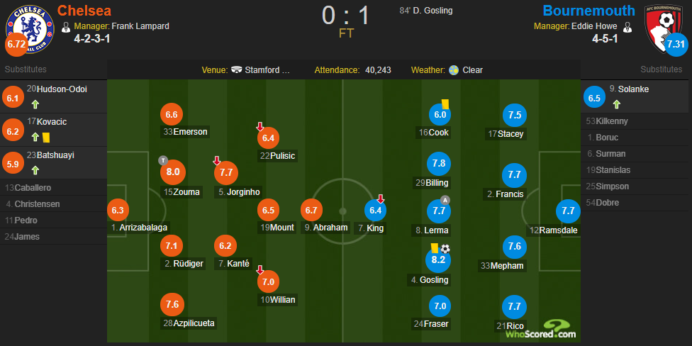 【英超-戈斯林打倒钩送蓝军5轮4败 切尔西0-1伯恩茅斯】