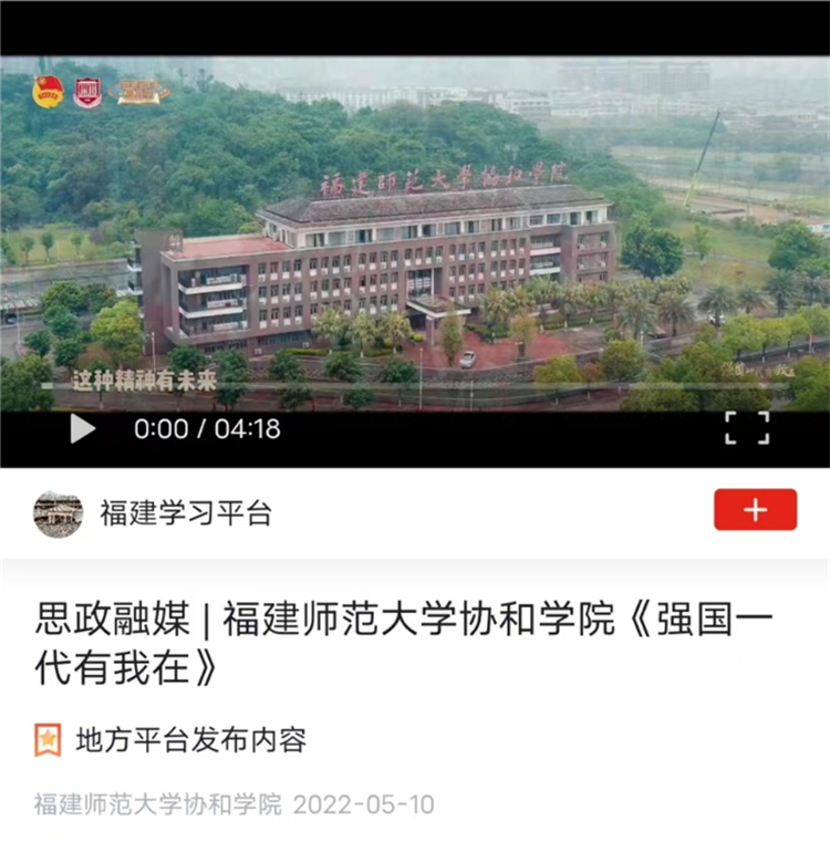 5月10日,学习强国报道,福建师范大学协和学子用歌声彰显勇于担当的青春力量,牢记党的教诲,立志民族复兴,不负韶华,不负时代,不负人民,以勇毅前行的精神面貌迎接建团百年!
