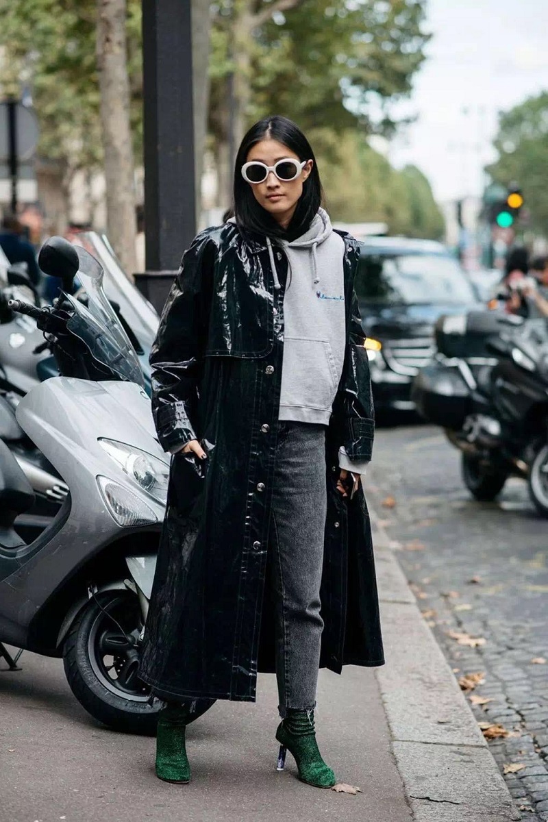 从PVC直腿裤、到略显大胆的高光迷你裙,再到雨衣风格的外套,它们一定能让你格外抢眼。