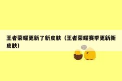 本文目录一览: 1、王者荣耀更新后新出哪些皮肤 2、王者荣耀S21已经开始了,有哪些新皮肤上架了呢? 3、王者荣耀...