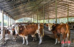 2月26日,在海口栽群村肉牛养殖基地,一头头肉牛体型健硕。记者 康登淋 摄 2月26日早上,美兰区大致坡镇栽群村村民英登茂骑着电动自行车,来到离家不远的肉牛养殖基地,装秸秆...