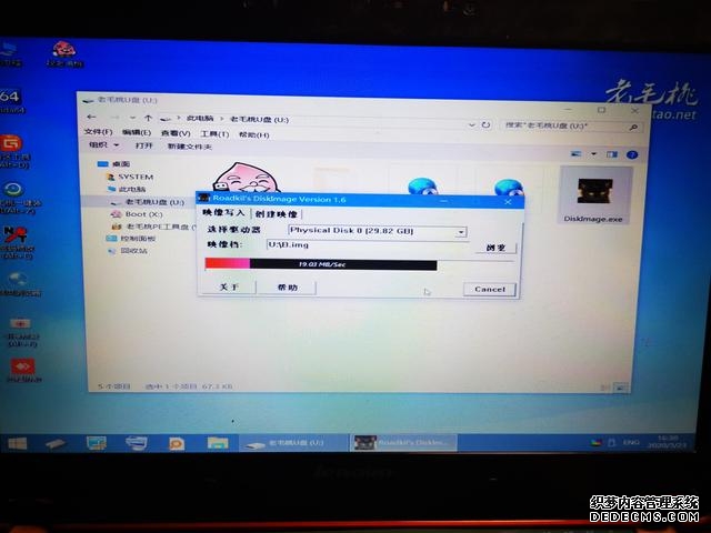 第四步:写盘 这个时候打开U盘,找到刚才复制上去的写盘软件DiskImage,打开之后开始写盘,记得务必选硬盘,不要选成U盘了。