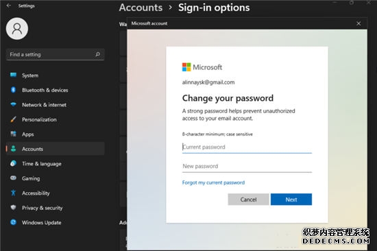 4、输入当前的密码,然后输入新的desired密码,然后单击下一步。