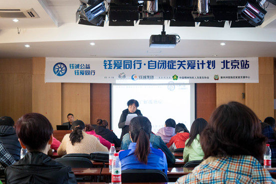 中国精神残疾人及亲友协会主席兼秘书长温洪发言 中国精神残疾人及亲友协会副秘书长郭德华博士也认为,只有了解,才能真正接纳。因此,对于自闭症的科普宣传非常重要。 践行公益 你我同行 “钰爱同行·自闭症关爱计划”,正是基于目前中国自闭症的社会环境而产生的。钰诚集团是以创新与发展科技金融为主轴,以建设国际区域经济自由港、国际安保服务与咨询产业为两翼的综合性企业集团。作为具有国际影响力的知名企业集团,钰诚集团一直坚持把企业社会责任融入到企业的战略规划中,通过专业化、常态化和持续化的公益活动,实现经济效益与社会效益共赢,并探索出了“金融+科技+公益”的履行社会责任之路。此次“钰爱同行?自闭症关爱计划”正是钰诚集团公益活动的重要一环。 北京站为此次“钰爱同行·自闭症关爱计划”活动中的首站。活动为期五天,从10月29日起至11月2日,分为3天的自闭症科普宣讲及培训和2天的自闭症家庭互动活动。在此次活动中,来自中国精神残疾人及亲友协会、孤独症儿童教育研究中心、康纳洲孤独症家庭支援中心及中科院的众多国内知名自闭症康复专家针对自闭症家长、教师及志愿者进行了专业培训。 互动活动安排在了风景宜人的雁栖湖,在专业老师的指导下,根据自闭症儿童的特点设置了许多趣味性、互动性的环节,包括户外拓展项目、工艺制作以及休闲游戏互动等。参与活动的自闭症家庭,在老师、志愿者的帮助下,度过了一段充实且欢乐的美好时光。