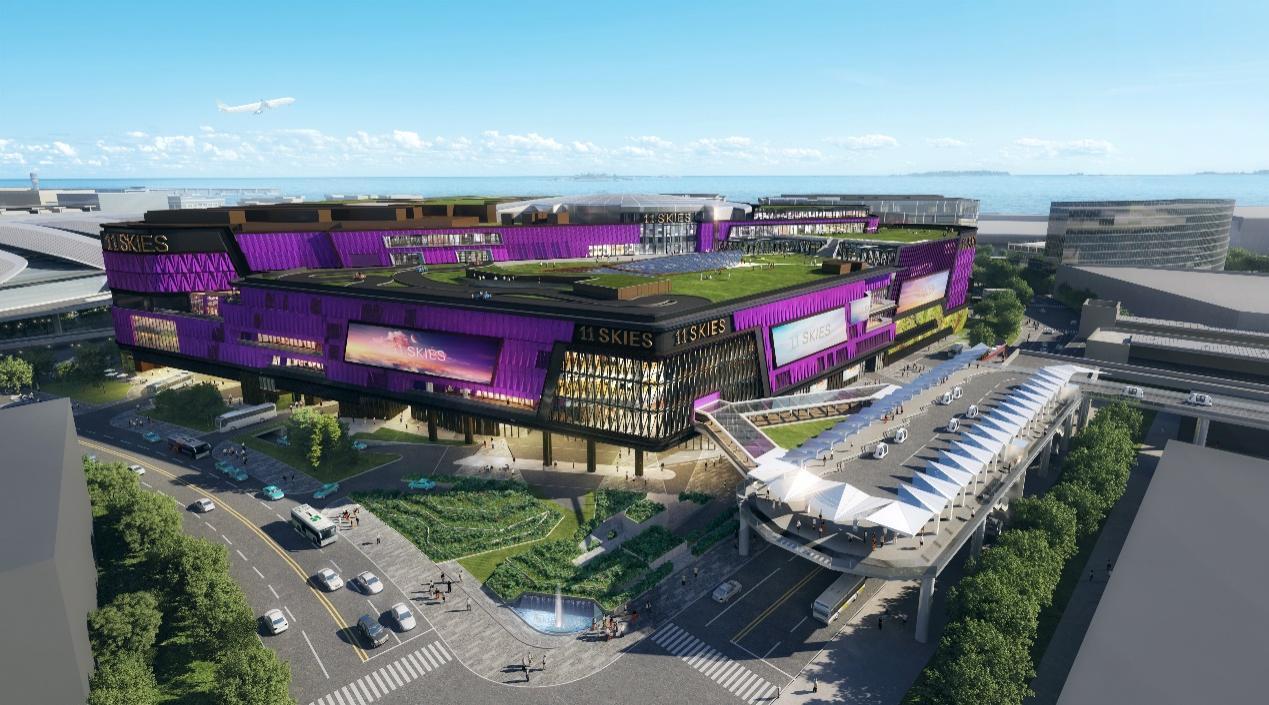 11天空效果图。 集零售娱乐休闲、医疗健康及金融服务于一身,成深圳居民必选之站 作为大型“一站式”零售娱乐商业新地标,11天空毗邻香港国际机场及港珠澳大桥,是航天城内重点发展项目,由新世界发展旗下K11负责运营,总楼面面积达35.3万平方米,于2022至2025年期间分阶段落成及启用。 据介绍,11天空将云集超过八百间各类店铺,其中零售餐饮部分占地24.7万平方米,从高街时尚到顶级奢侈品牌一应俱全,涵盖120多种餐饮概念店,数目为香港之最。游客可于出发前、落地后在11天空享受大湾区顶级休闲体验。 除了零售餐饮业态,未来的11天空将设有香港最大室内娱乐空间,包括8大首度亮相香港的世界级娱乐设施,其中不少更是首次进驻大中华区、大湾区。楼面面积逾5.3万平方米,以学习、探索、冒险、沉浸式体验为主题,可全天候开放给不同年龄客群。 其中4项娱乐设施预计将于2023年底至2024年初陆续登场:大中华区首个KidZania趣志家儿童职业体验乐园,将为小朋友及家庭带来无尽欢乐;韩国大型艺术博物馆ARTE MUSEUM首度落户大湾区,将为游客带来沉浸式艺术体验,享受多重感官刺激带来的愉悦感;香港首间飞行影院“飞越天际”,让游客仿佛飞越香港上空,欣赏东方之珠的古今风貌;以及全球首个以柏灵顿熊为主题的室内亲子娱乐体验“柏灵顿历险乐园”,让英国家喻户晓的童话书角色陪伴游客度过亲子时光。
