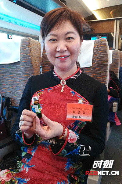 从事中药产业的瑶族女企业家唐纯玉带的口服液凝聚着振兴中药产业的希望:把传统中药产业发扬光大。 A woman entrepreneur of the Yao nationality named Tang Chunyu who is engaged in traditional Chinese medicine (TCM) industry, carries a bottle of TCM oral liquid. She hopes to carry forward traditional Chinese medicine.