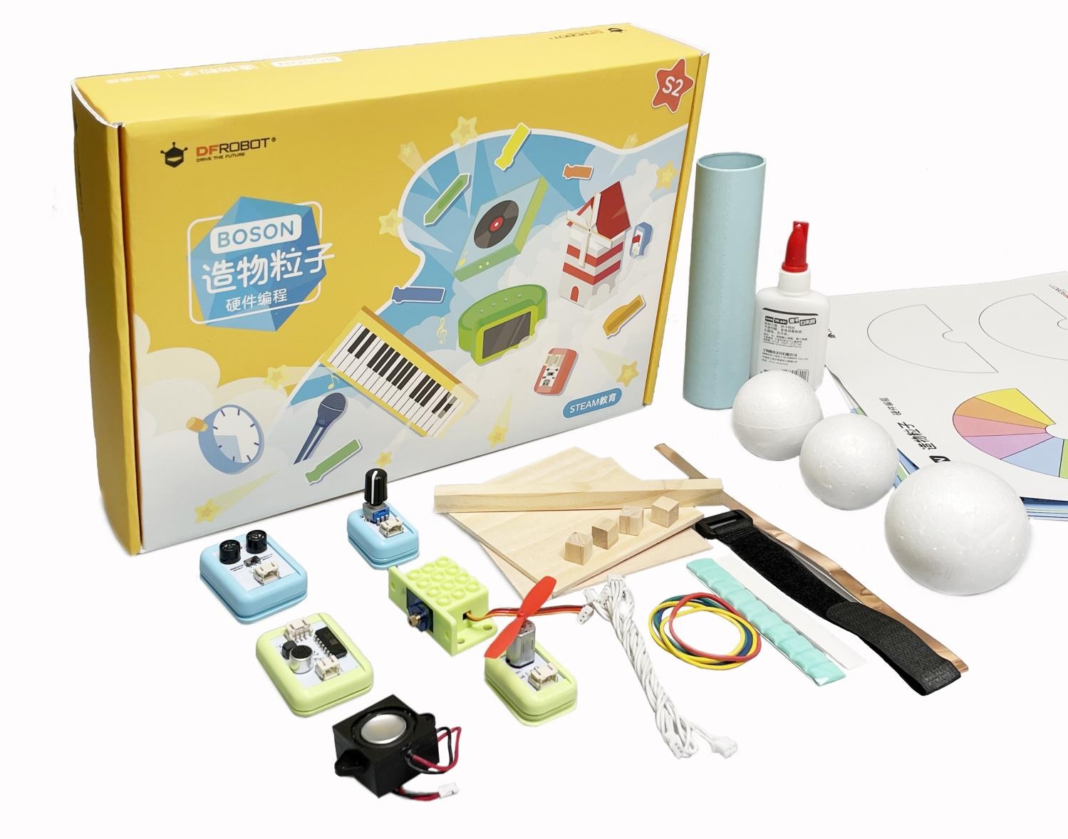 现在越来越多的家长开始意识到培养孩子的工程思维的重要性,但是如何培养孩子的工程思维一直是一个难题。很多家长都会遇到这个问题,他们希望能够通过一些教具来帮助孩子培养工程思维,比如购买逻辑思维和策略类的桌游、化学实验盒子、机器人编程玩具等。但是,目前市面上的一些教育工具只涵盖了比如编程或者物理结构等单一方面,不能全面地培养孩子的工程思维。 造物粒子是DFRobot的一款少儿硬件编程套件,旨在让孩子们通过编程创造出有趣的玩具和实用的智能产品。与市面上大多数编程课程和编程玩具不同的是,造物粒子注重让孩子们的编程想法得以真正落地。造物粒子适合7-12岁的儿童,它分为四个难度不同的课程包,从低到高依次为入门S1、初级S2、中级S3和高级S4。每个课程包都包含了一系列有趣的活动和实验,帮助孩子们了解科学、技术、工程和数学(STEM)领域的知识,培养他们的创造力和解决问题的能力。