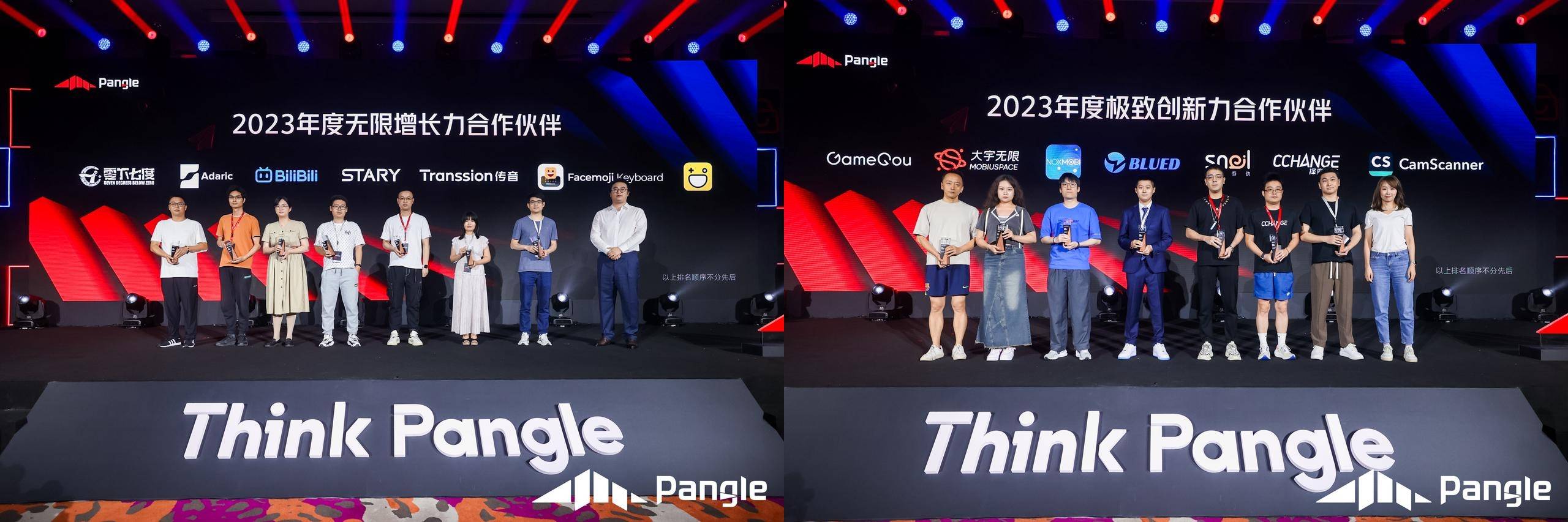此外,大会还邀请到来自大宇无限、Touka Games和Adaric Music的三位客户代表,围绕游戏及非游行业在买量变现一体增长等方面进行讨论与实战经验分享。 作为一家成熟的精品游戏发行商,Adaric Music商业化负责人王薏婷表示:“出海企业需时刻关注海外政策动态,通过对产品商业化的精细化运营来优化用户体验,同时提升回收,抢占市场先机。” Touka Games联合创始人&发行负责人谭凯琳表示:“作为一家初创企业,想要在激烈的竞争环境中活下来,除了需要花费更多时间在立项设计和提升人效方面,开发者还需适应市场变化,通过更灵活的商业化策略、混合变现赛道模式、精细化买量等方式提升游戏的盈利能力。” 大宇无限是一家在拉美市场稳步发展的互联网科技公司,其商业化销售负责人王天宇表示:“全球市场从来都不是一个市场,而是无数个区域市场的合集,出海企业需要根据自身业务的发展情况选择最适配的赛道及区域,并借助像Pangle这样电商预算强、与本地用户高度适配的平台做好商业化运营,在区域市场站稳脚跟。” 独木不成林,出海生态的构建离不开多方的共同努力。会上,Pangle重磅发布2023年度优秀合作伙伴大奖,围绕无限增长力、极致创新力、最具影响力、商业领创力四个方面,为表现突出的23家生态伙伴进行颁奖,树立行业标杆。