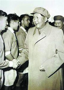 左上:毛澤東與外國足球隊員親切握手。記者 王一 整理