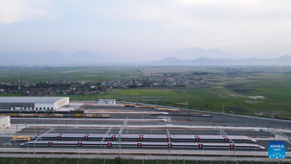 Foto aérea tirada no dia 20 de julho de 2023 mostra trens de alta velocidade estacionados perto da oficina conjunta da Ferrovia de Alta Velocidade Jacarta-Bandung em Bandung, Província de Java Ocidental, Indonésia.(Xinhua/Xu Qin) (责任编辑:admin) |
