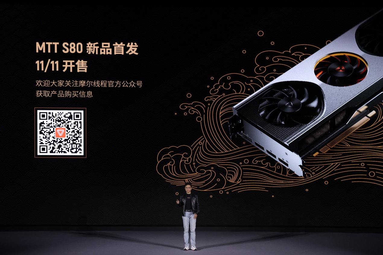 摩尔线程现场宣布,MTT S80显卡已经完成首批生产与备货,将于2022年11月11日在京东电商平台开启限量销售。