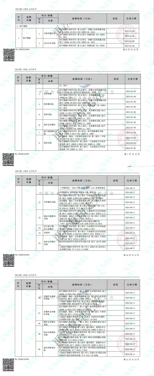 ▲ 国家CMA+CNAS扩项评审现场 此次CMA+CNAS扩项顺利获得批准授权签字的领域包含医疗器械理化检测项目、微生物检测项目、生物相容性检测项目三大领域,尤其是取得了GB/T 14233.1-2022 、呼吸气路的生物学评价ISO 18562-2/-3/-4全套及医疗器械生物学评价GB/T16886/ISO 10933全套资质能力。