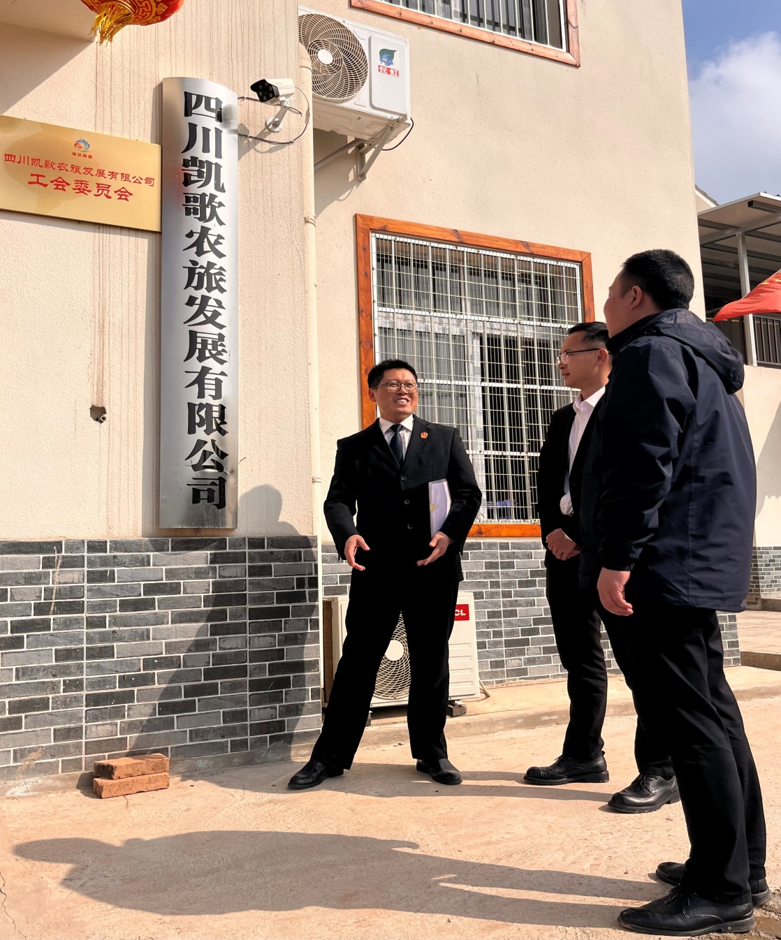 近年来,安居区人民法院积极构建以党委领导、法庭主导,司法所、派出所、综治中心、妇联等8家基层组织参与的“法官+N”联动解纷工作机制,将人民法庭工作触角延伸到最基层,推动纠纷化解从法庭“单打独斗”向基层“协同发力”转变,法治护航海龙凯歌建设顺利进行。大力推进“一村一法官”工作,13名法官“一对一”对接13个乡村振兴精品村,开展法治讲座、案例宣讲,诉前调解,玉泉村失地农户保险金分配、海龙村征地拆迁补偿、会龙镇安置房遗留问题等重大矛盾纠纷得以妥善化解。曹某诉其母、弟继承纠纷一案,曾在中央电视台《乡理乡亲》栏目作为法治调解成功案例播出。 聚焦产业发展,描绘乡村振兴“新画卷” “感谢安居法院开展送法进企业活动,让我们在学到法律知识的同时,提高了企业职工的法律风险防范意识,安居法院为我公司更好地经营、管理海龙凯歌景区提供了优质的司法服务。”四川凯歌农旅发展有限公司办公室综合部郭部长在近期横山法庭法官杨军开展送法进企业活动后感激地说道。