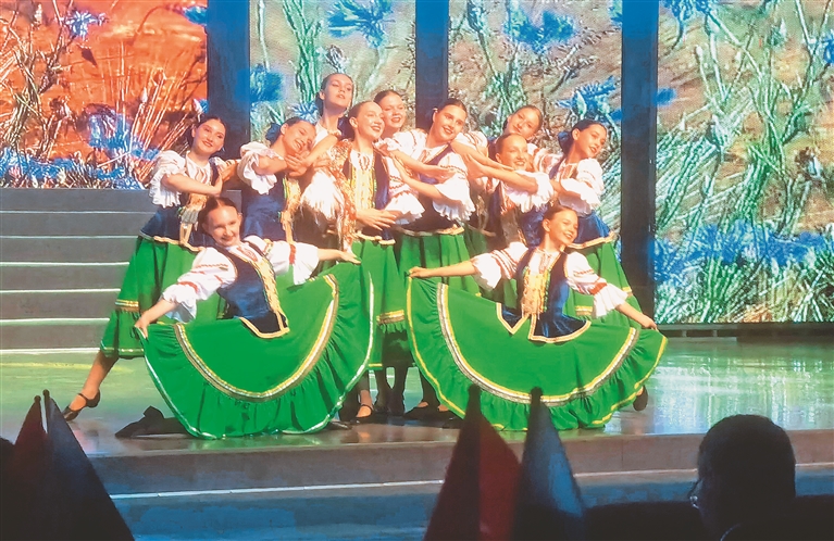 俄罗斯演员在中俄界江文化旅游节上表演舞蹈。