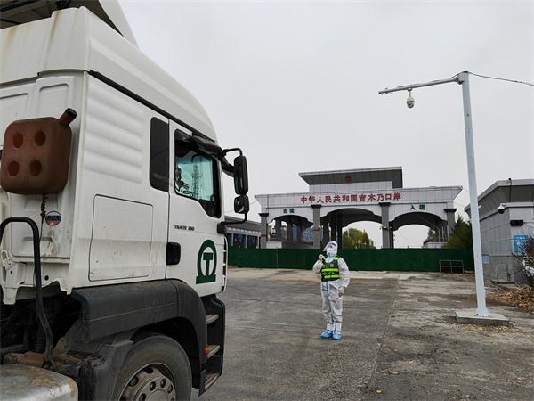 吉木乃口岸位於新疆阿勒泰吉木乃縣境內,為陸路口岸,同哈薩克的東哈薩克州毗鄰,是我國與哈薩克、俄羅斯聯邦、蒙古國進行國際貿易最便捷的通道。隨著“一帶一路”戰略的深入實施,今年 “十一”前夕,口岸進出入輛大幅攀升,迎來了疫情防控常態化後的進出口高峰。 為切實維護口岸安全穩定和順暢通關,吉木乃邊檢站下先手棋,制定詳細的安保方案,組建黨員突擊隊,作為第9批輪勤人員進駐口岸限定區域,採取“非接觸式”方式開展出入境邊防檢查。組織民警對口岸限定區域進行細緻的安全檢查,主動發現並消除各類安全隱患,哪些點位容易引發出入境車輛滯留、哪些地方容易出現警情,要求民警都要做到心中有數。