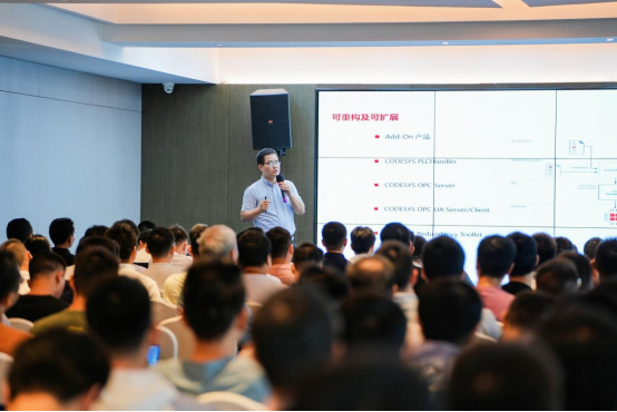 8月26日~ 27日,智能自动化— CODESYS编程开发技术大会这艘满载着行业青年精英的巨轮在深圳“鸣笛启航”!感谢技术精英和行业翘楚们的积极参与,在两天的时间里,大家朝夕相处、筑坛论道,展望趋势、共谋发展。真真切切地共同体验和见证了CODESYS的巨大优势和无限潜力。 让我们一起回顾本次技术大会的精彩瞬间: 首先,CODESYS虚拟控制技术及行业解决方案的报告,为大家了解和认识基于IT与OT深度融合创新的智能自动化打开了一扇“登堂入室的大门”。 CODESYS虚拟控制技术通过集成CODESYS运行时系统(Runtime System)和实时容器技术,大幅降低了用户对控制器(PLC)硬件的采购、安装、布线和备件维护的持续高额成本,同时进一步缩短了控制器(PLC)应用程序的开发周期、大幅降低了开发成本,助力应用开发工程师在自动化项目的标准化基础上,轻松地实现复用之前难以复用的各类功能(能力)、创建之前难以创建的各类应用。