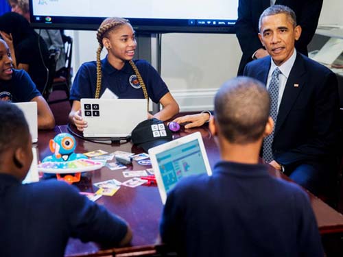 2017年,新华网一次调查显示,54%的95后最向往的职业是主播和网红。在此之前,也有机构在北京多所小学做过抽样调查,结果显示有八成的小学生希望长大后成为一名网红,许多家长甚至为孩子报了“网红培训班”。 在中国,这显然不是值得倡导的价值观。从2017年起,国务院、教育部就频繁发文,开始在中小学推进人工智能和编程教育。其目的,自然是让中国的中小学生在未来的十年、二十年,成为生产力工具的创造者,而非单纯的工具使用者、甚至是信息接收器。 2013年,时任美国总统奥巴马开始倡导“编程一小时”活动,并对美国学生说“你们不能只满足于玩手机,而要开发手机的应用”。也就在同一年,由奥巴马主导的美国制造业回流计划,出台了《机器人技术路线图:从互联网到机器人》,以确保美国在先进制造业领域的全球主导地位。
