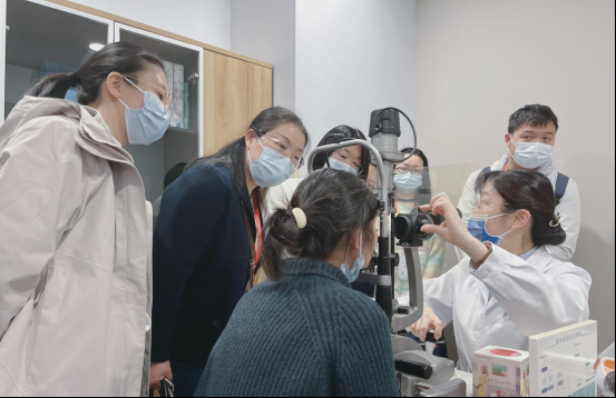 学员学习眼科检查设备与功能 当天,学员们还参与了青光眼周专家义诊的旁听,近距离学习了眼科检查中应该注意的细节,让各位同仁真切学习到眼病的分辨与治疗要领,以期为更多地区的眼病患者带来光明。