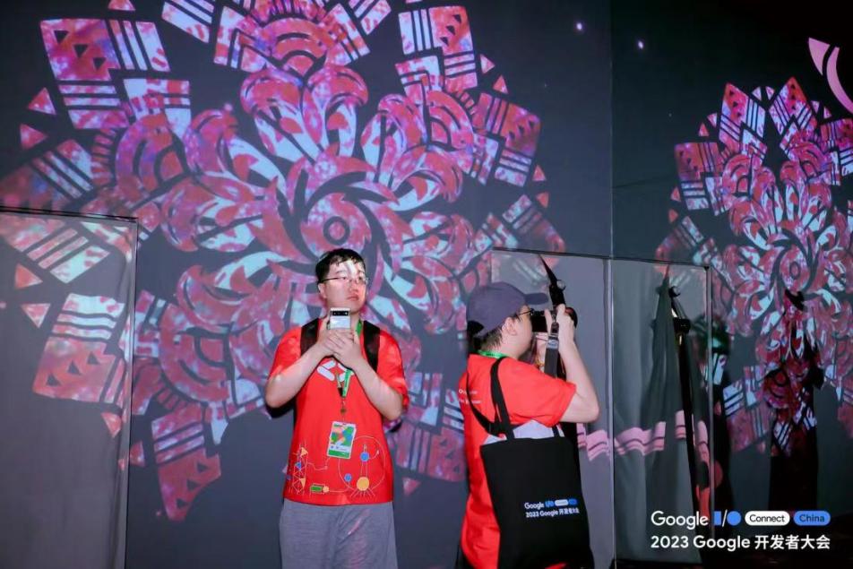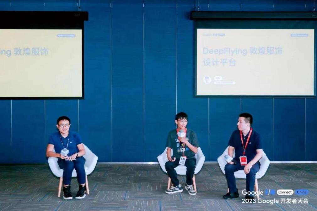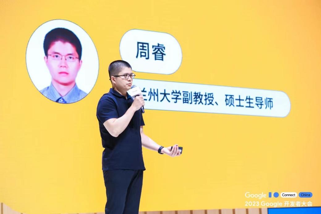 开发者大会举办地:上海世博中心 大会开幕式上,Google大中华区总裁陈俊廷先生在主旨演讲中特别提到与兰州大学合作的DeepFlying项目,是将敦煌传统的纹样与现代的图形结合,借助科技与历史近距离地对话,以艺术为桥,让想象力触手可及,借助科技的创新,促进文化之间的理解和联结。 9月6日下午,周睿副教授在大会“特别呈现”环节中就Google教育合作助力传承和弘扬中华传统文化专题在主会场作了报告,介绍了DeepFlying团队目前的工作成果,包括数据集构建、技术实现、实训实践等,向与会人员展示了敦煌特色文化与人工智能技术融合的创新研究成果,表明前沿技术在传统文化中的应用潜力,为技术助力中华传统文化的传承与弘扬提供了新思路。