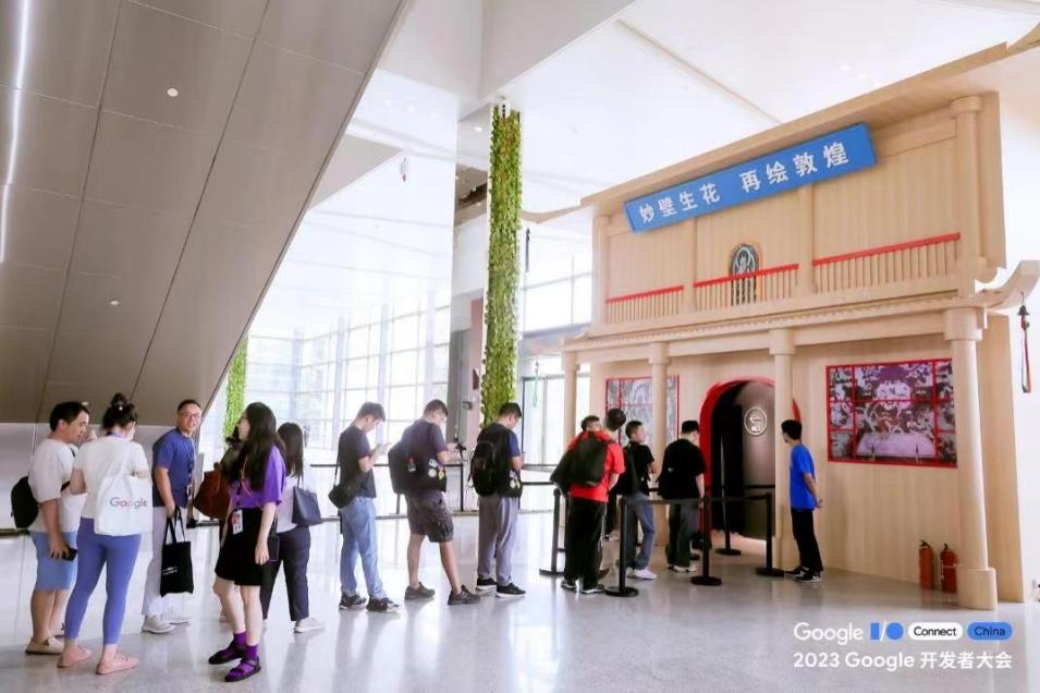 参与互动的人络绎不绝 2018年,DSLab负责人周庆国教授提出了将前沿人工智能技术应用于敦煌壁画研究的设想,并组建了DeepFlying研究团队,迄今已得到教育部产学合作协同育人项目持续两轮的支持。由雍宾宾副教授带领团队从数据采集标记开始开展了一系列研究工作,利用人工智能技术将精美敦煌壁画与新时代的数字文创融合创新,实现科技助力文化数字化转型。 此次大会,来自世界各地的众多开发者齐聚一堂,共享科技盛宴,涵盖了技术交流、文化传承、教育合作、应用推广等多个领域,充分展示了高新技术与传统文化的相互兼容性。通过这次大会,DeepFlying团队不仅拓宽了科研视野,也让全球的开发者了解了兰州大学的特色研究,对于未来的项目合作具有重大意义。DeepFlying团队未来也将继续扎根兰大,开拓创新,聚焦敦煌,利用人工智能发掘弘扬更多的敦煌文化之美。