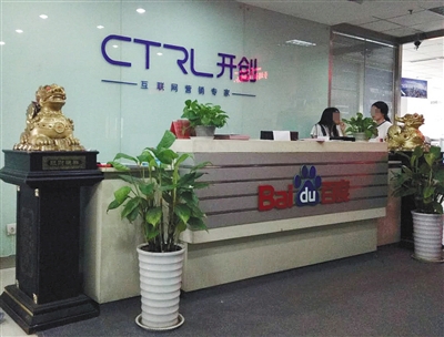 山东开创集团前台挂有百度logo,其为百度推广第二大代理商。与该集团合作的代理业务员称,有赌博游戏公司通过其在百度开通账户,做商业推广。