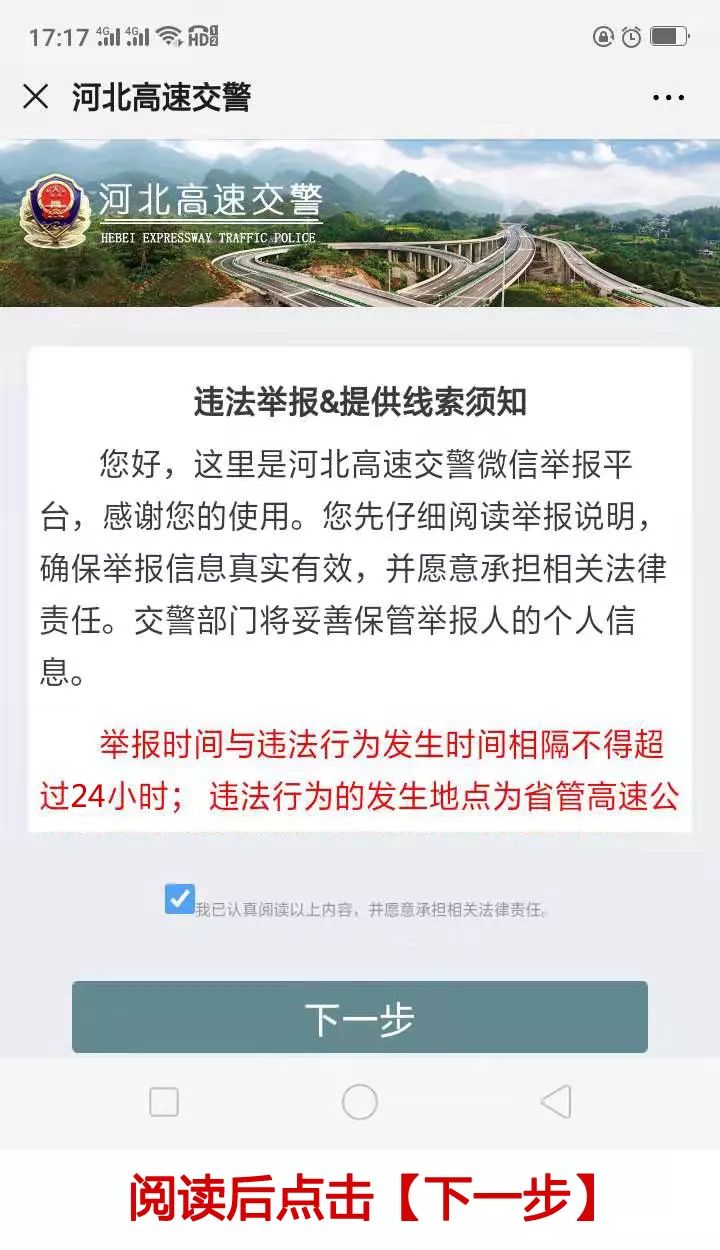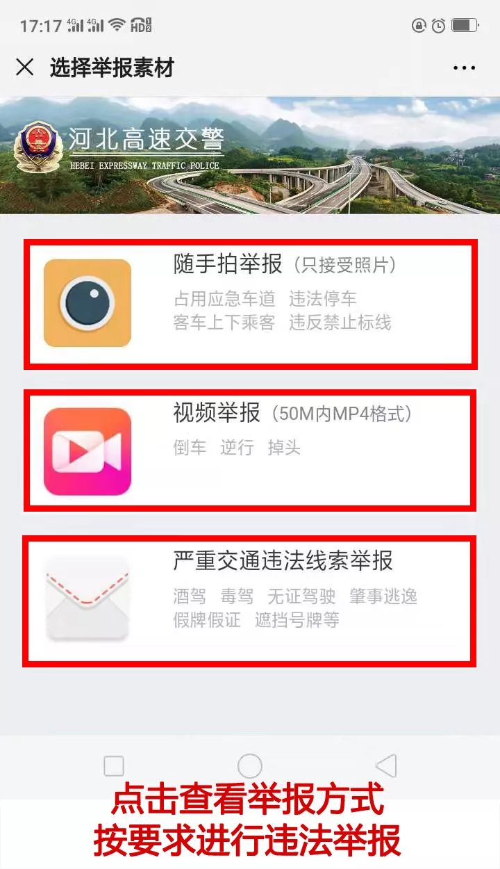 _ _ _ _ _ _ _ _ _ 向左滑动查看 # 特别提醒 # 交通违法行为举报奖励时,对举报人当日多次举报的,设立奖励上限,单日不超过最高举报奖10倍的举报奖金。对于同一台违法车辆,多人举报且均符合录入标准的,按照举报时间顺序,奖励第一名举报人。 举报时间与违法行为发生时间相隔不得超过24小时; 违法行为的发生地点为省管高速公路;请真实填写举报信息,不实信息或恶意举报将被列入河北高速交警违法举报“黑名单”,并追究相应法律责任。 举报人在拍摄交通违法行为时应严格遵守交通法规,不得在驾驶过程中或其它有碍交通安全的情况下拍摄。