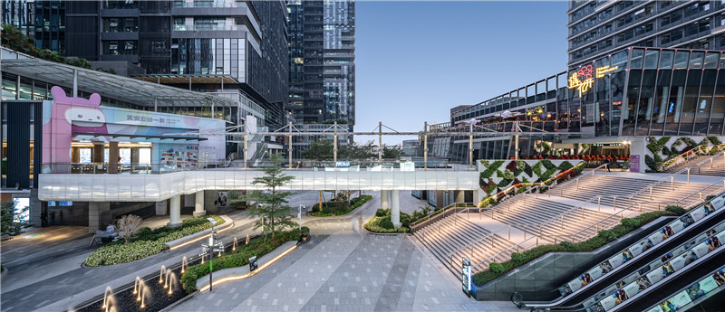 在空间层次规划上,打造了互联互通的开放空间形态,整个园区实现地下、地面、地上三层立体式交通互联互通,规划深圳首个以市政道路标准建设的地下环路工程,将整个园区的地下停车场连接,形成园区地下微循环。同时,云平台和交互式连廊将整个产业园区连接起来,提供了充足的交流交互空间。
