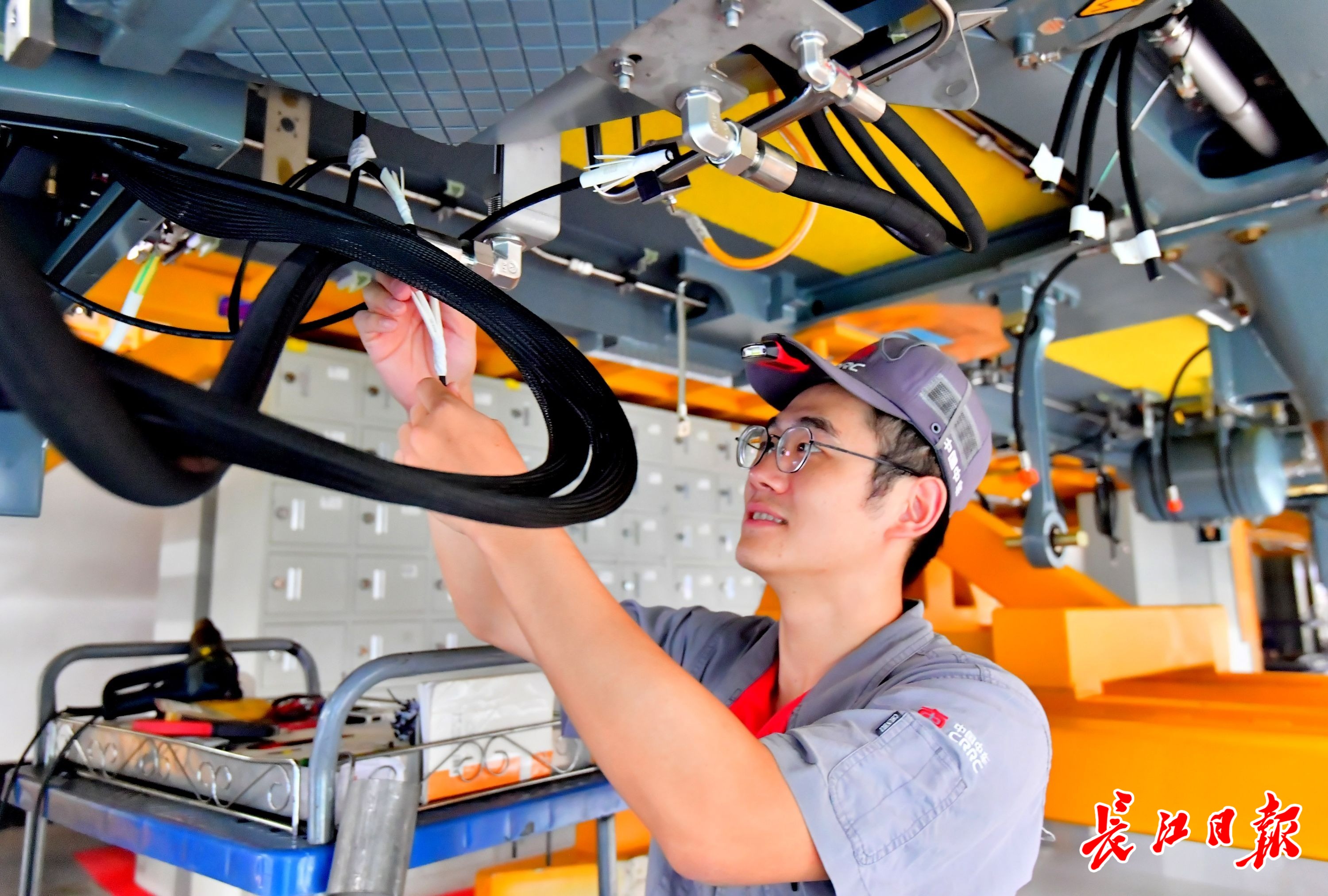 武汉中车长客轨道车辆有限公司每天生产2列地铁车辆。长江日报记者刘斌 摄 在武汉中车长客技术质量部办公室,墙面上一排白板上,研发计划文件贴得满满当当,上面记录着新产品研发、工艺管理进度。一旁的会议室里,20余名研发工程师热烈讨论着产品的优化方向。 “武汉地铁12号线是武汉市第二条全自动无人驾驶地铁线。围绕其安全性能提升,我们在紧锣密鼓推动产品研发。”武汉中车长客总经理娄玉飞说,不仅仅新造列车,公司还聚焦核心技术、关键零部件的自主研发,让列车实现更加安全的运行。今年1—8月,公司产值达19.43亿元,同比增长36.4%。 试错百余次成功研发地铁防爬器 已应用于国内30余条线路