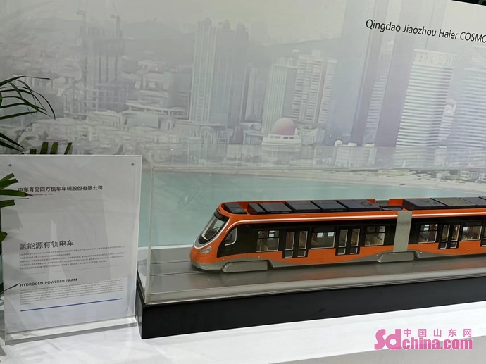 青岛森麒麟公司继上届展出为国产大飞机C919配套航空轮胎后,此次展出的是为中国商飞ARJ21-700客机配套的主轮胎。该型轮胎目前在多家航空公司装机使用,实现国产替代,打破了国内民用航空轮胎市场长期被国外巨头垄断的局面。 拥抱绿色发展 “青岛制造”助力能源转型 中车四方展出的氢能源有轨电车加注一次氢只需要3分钟,在加满氢的状态下,可以满载持续行驶近100公里,最高运行时速可达70公里,具有高效能的突出优势。而且氢燃料电池的整个反应过程生成的唯一产物是水,做到了真正意义上的“零”排放,节能环保。