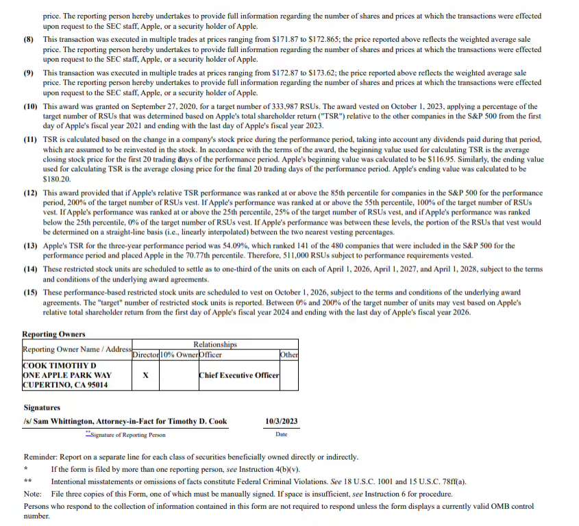 苹果CEO库克再出手:出售苹果股票套现近3亿元,金额创2021年以来最大!