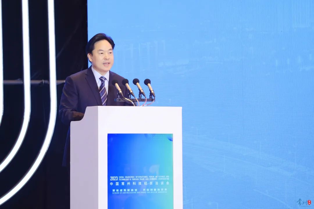 陈金虎代表市委、市政府,向各位嘉宾表示热烈欢迎,向长期以来关心支持常州发展的各界朋友表示感谢。他说,迈上新时代新征程,常州正深入学习贯彻习近平新时代中国特色社会主义思想,全面落实习近平总书记对江苏工作重要讲话精神,围绕“国际化智造名城、长三角中轴枢纽”城市定位,大力实施“532”发展战略,聚力打造新能源之都,全力建设“两湖”创新区,奋力书写好中国式现代化的常州答卷。今年以来,常州经济社会发展持续向好、动能增强,主要经济指标增幅高于全省、领跑苏南,正以奋进之势全力奔赴“GDP万亿之城”。常州比任何时候都期盼合作,也比以往任何时候都更有条件成就事业。 陈金虎表示,在常州,可以共享产业发展新机遇。常州实体经济发达,智能制造闻名,拥有同类城市中最完备的产业体系。常州抢抓风口、提前布局,打造引领长三角、辐射全国、全球有影响力的“新能源之都”。随着新能源产业聚变效应不断显现,大家在这里一定能跑出“加速度”、共拓“新蓝海”。 在常州,可以感受对外开放新动力。随着“一点居中、两带联动、十字交叉、米字交汇、左右逢源”的区位优势进一步凸显,常州主动融入服务“一带一路”、长江经济带、长三角一体化发展等重大机遇,打造高能级开放平台,大家在这里一定能开拓更大市场空间、赢得更多发展机会。 在常州,可以激发创新创业新活力。常州始终坚持将创新作为第一动力,大力实施龙城英才计划,出台青年人才“生活居住双资助”政策,引领新产业、新业态、新模式的创新浪潮,大家在这里一定能挥洒才智、成就事业,书写更多精彩的创新创业故事。 在常州,可以领略城市发展新魅力。常州正传承厚重的历史文化底蕴,放大秀美的自然禀赋优势,统筹推进“两湖”创新区发展、老城厢复兴和高铁新城建设,擦亮“六个常有”民生名片,让这座城市更有质量、更有情怀、更有温度、更有安全感,大家在这里一定能够尽享多姿多彩的品质生活。 陈金虎表示,常州将持续放大全国营商环境标杆城市效应,全力打造审批事项最少、办事效率最高、投资环境最优、企业获得感最强的城市。希望广大企业家和朋友们与常州在合作共赢中一起奔赴更加美好的未来。 现场进行了城市代言人——“全球CEO常州行”集中展示。今年以来,已有60多位跨国公司CEO陆续到访常州,感受常州强劲的发展势头、雄厚的产业基础和开放创新的独特魅力。