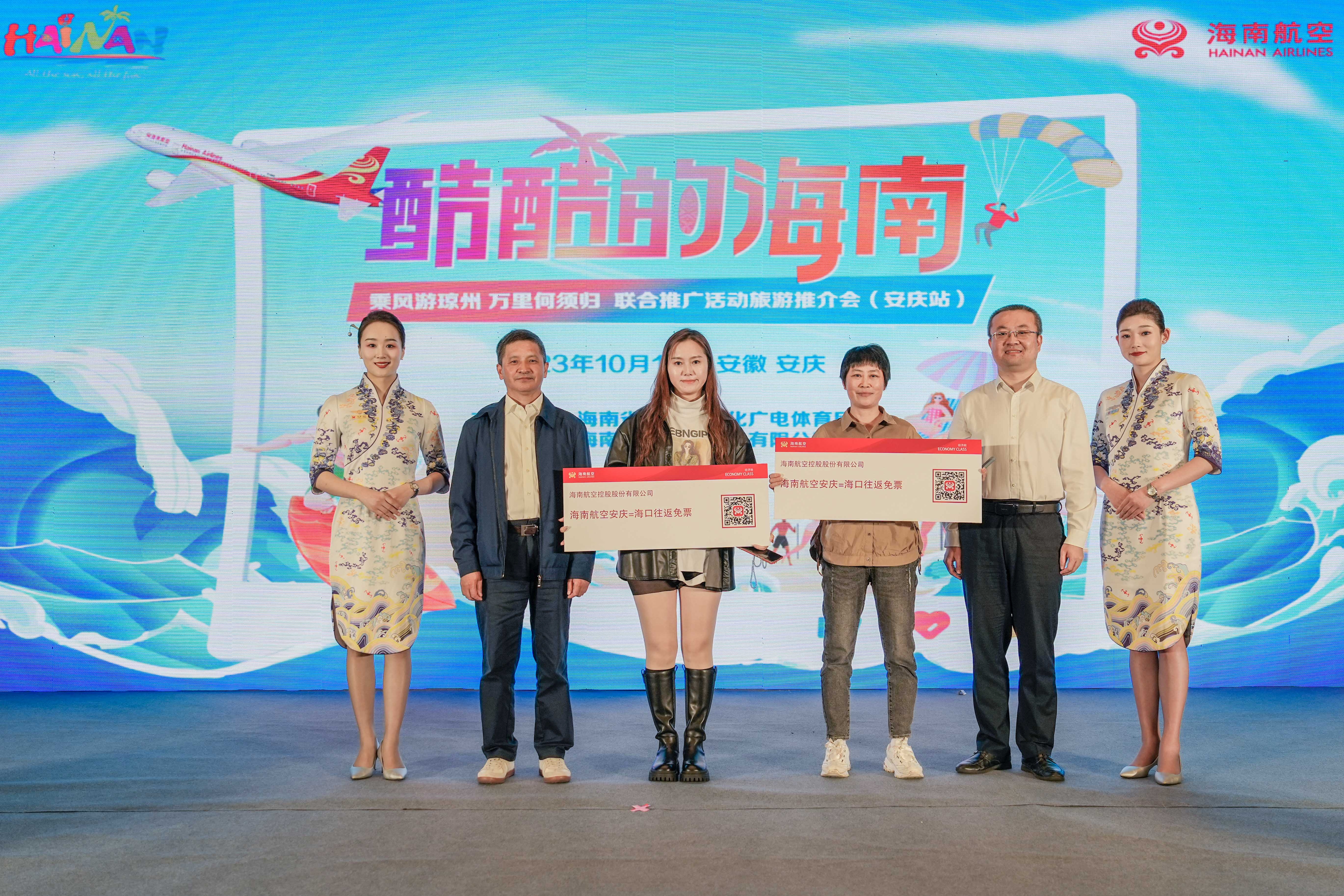 图:“酷酷的海南—乘风游琼州 万里何须归”联合推广活动旅游推介会与会领导嘉宾合影 民航资源网2023年10月14日消息:10月13日下午,由海南省旅游和文化广电体育厅主办,海南航空控股股份有限公司承办的“酷酷的海南——乘风游琼州万里何须归”联合推广活动六城市推介会首站亮相安庆,现场推介“酷酷的海南”旅游新形象及海南旅游相关航线、航旅产品,让现场观众“云游海南”,感受海南的独特魅力。
