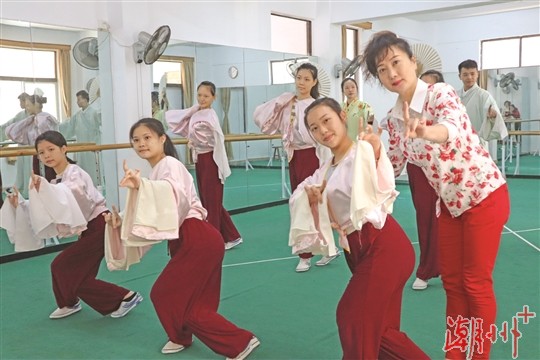 市潮剧艺术培训中心的学员们在老师指导下刻苦练功。