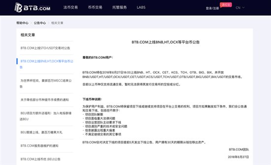 【编者按】继Fcoin上线币安的平台币BNB之后,又有一家数字货币交易所上线其他交易所的平台币交易,且一口气上了九家主流交易所的平台币。这家交易所就 继Fcoin上线币安的平台币BNB之后,又有一家数字货币交易所上线其他交易所的平台币交易,且一口气上了九家主流交易所的平台币。这家交易所就是BTB,其于6月27日宣布为用户提供BNB(币安平台币)、HT(火币平台币)、OCX(OCX平台币)的充值和交易服务。平台币上线以来,成交量稳步增长,部分平台币的成交价格甚至高于其原属交易所的成交价格。
