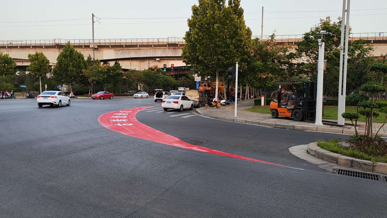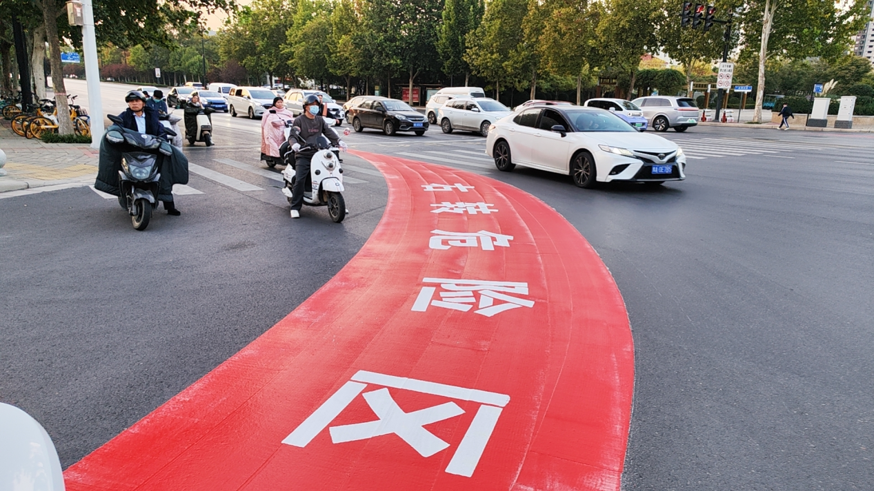 郑州街头现新型月牙状“危险右转区”标识,或将全市推广