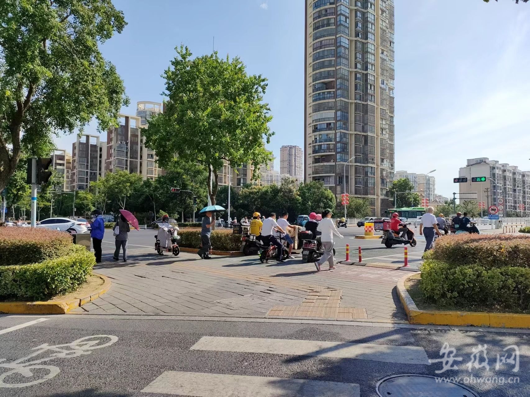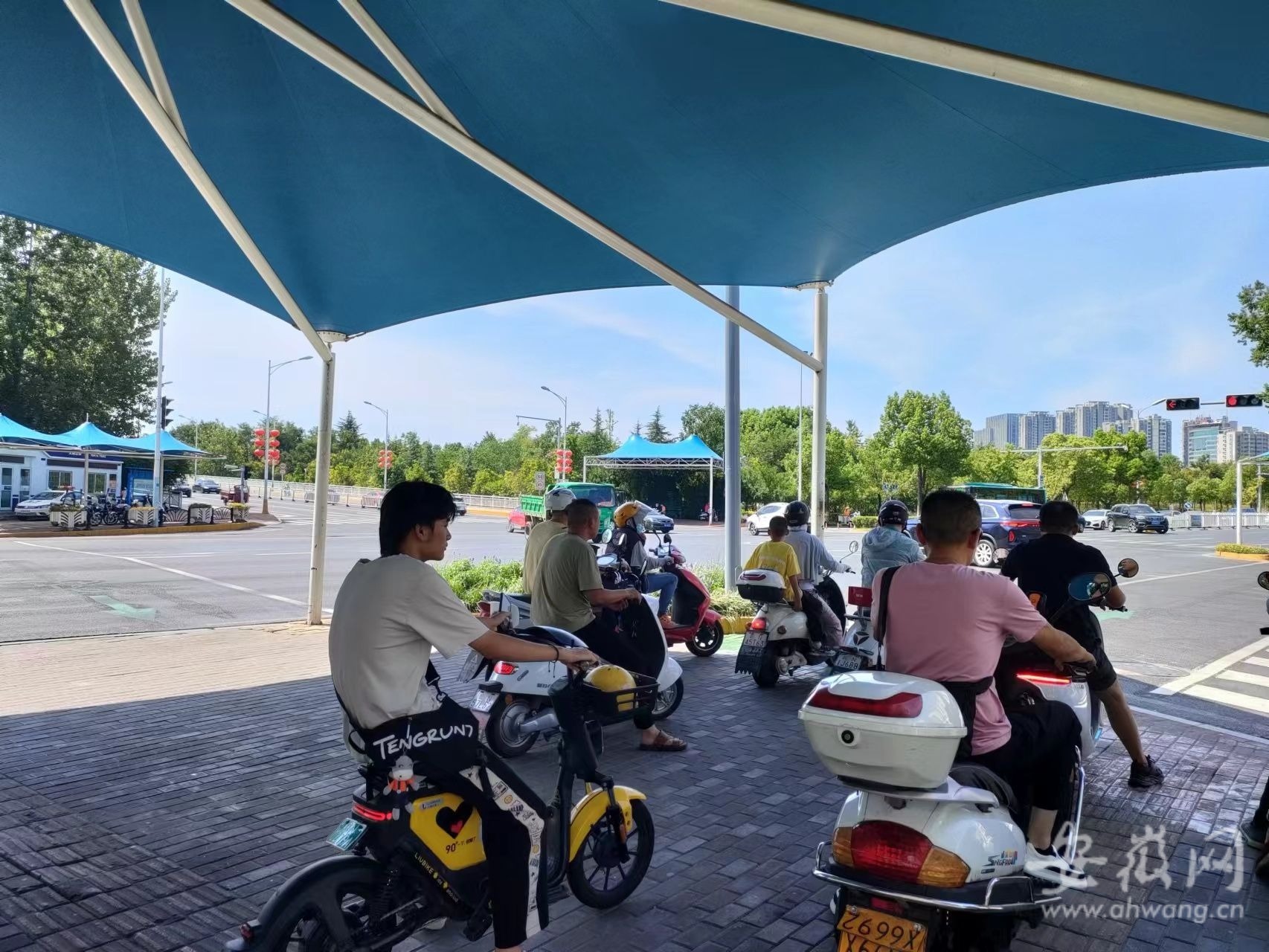 8月9日上午10时20分许,记者来到八公山路与皖西大道交口看到,该路口东、西、南、北四角分别建设了4个跨度较大的复合景观式遮阳棚,该遮阳棚是天蓝色棚顶和白色框架,在蓝天白云的衬托下,显得十分漂亮。过往电动车和行人在棚下等候红灯时感受片刻清凉,十分惬意。“这个棚子建的是好,外面太阳那么晒人,进来这里好凉快,真不错!”一位等候红灯的骑电动车男子说。 记者随后又走访了皖西大道与大别山路交口和佛子岭路与解放路交口,所见都是2021年以来新建的遮阳棚,这些遮阳棚以复合景观式最多,占地面积较大,遮阳和挡雨效果好且美观大方。 今年拟再建39处遮阳棚 “除了新建的,我们预计今年下半年还要再建一批遮阳棚,预计八月底就有成效。”六安市公安交警支队宣传科负责人8月9日上午告诉记者。他说,由于考虑到各主要路口平时交通流量大,十分繁忙,在路口开挖立柱基础等施工影响交通,新一批遮阳棚在招标后,先由招标施工单位先统一焊接好立柱、安装好顶棚,统一以“模块化”方式组装好之后,一次性就施工安装到位,这样就可以节省占用道路时间。 新安晚报、安徽网、大皖新闻记者了解到,经过全面摸排,今年拟在六安市主城区11个驻留岛式交通路口规划建设39处非机动车和行人等候区遮阳棚,包括:皋城路与安丰路交口、解放路与人民路交口、八公山路与光明路交口等路口。