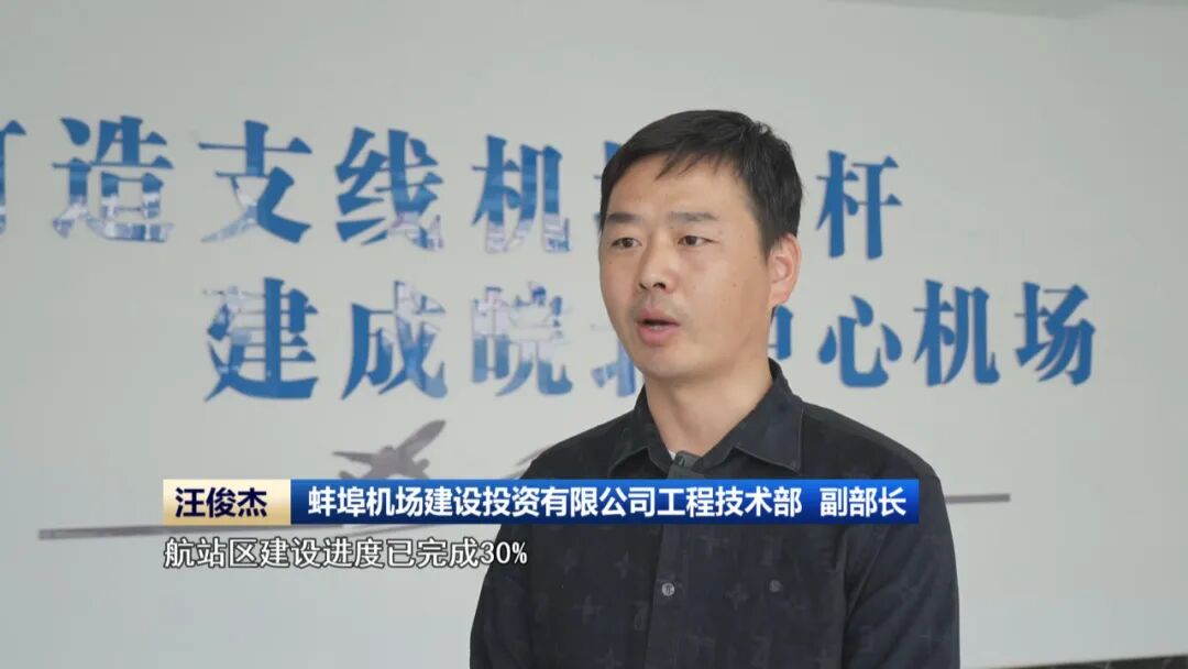 蚌埠机场建设投资有限公司工程技术部 副部长 汪俊杰 航站区建设进度已完成30%,飞行区已完成总体工程量的60%,接下来我们将加强调度,加快工程进度,力争实现2024年竣工验收通过,2025年实现通航。