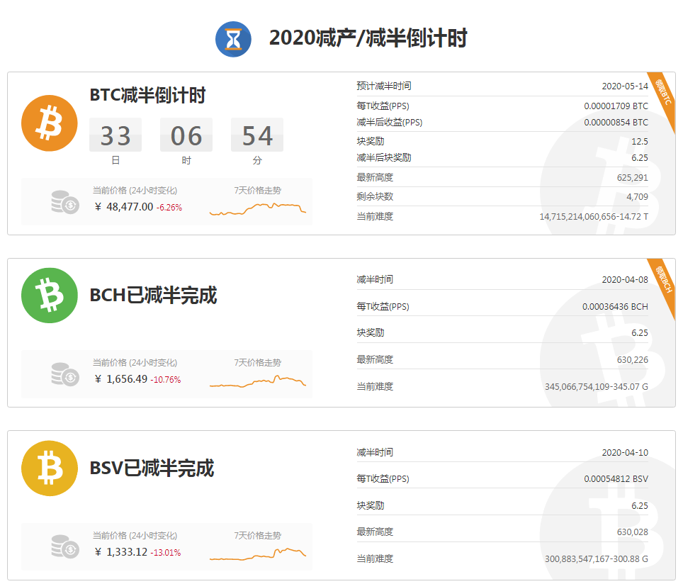 截图来源:非小号网站 且暴跌之后,比特币价格仍在不断下降中。加密货币数据网站QKL123.com显示,17点46分,比特币最低价格已触及6853美元。 伴随着今天的暴跌,比特币近7天的涨幅几乎被抹平。非小号行情显示,过去24小时,比特币价格跌5.15%;近7天,比特币价格涨0.29%;近30天,比特币价格跌10.54%;近3个月,比特币价格跌12.03%;近6个月,比特币价格跌17.09%。 诞生于2008年的比特币,最大供应上限是2100万,为了刺激挖矿,特地设计了减半机制,每10分钟挖出的比特币数量每四年减少一半。区块奖励减半意味着投入流通中的新比特币变少,提升比特币的价格。 今年5月份,比特币即将迎来自己的第三次减半,矿工区块奖励由12.5枚比特币减至6.25枚比特币。 而今日的比特币暴跌,适逢近期币圈不断热炒的挖矿奖励减半发生之时。 两大分叉币“减半”后价格下跌而在5月比特币减半前,作为比特币的知名分叉币BCH(比特币现金)、BSV(比特币SV)均于近日完成减半。 据加密货币数据网站BitInfoCharts,4月8日20点19分,在区块630000高度,BCH完成首次减半,矿工区块奖励由12.5枚BCH减至6.25枚BCH。 今日上午8点48分,BSV完成首次减半,矿工区块奖励由12.5枚BSV减至6.25枚BSV。