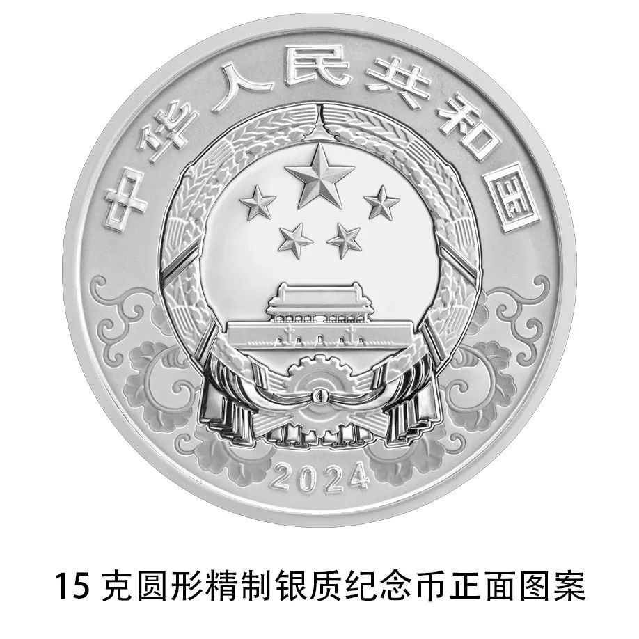 中国人民银行定于2023年11月17日发行2024中国甲辰(龙)年贵金属纪念币一套。该套贵金属纪念币共12枚,其中金质纪念币7枚,银质纪念币4枚,铂质纪念币1枚,均为中华人民共和国法定货币。 一、纪念币图案 (一)正面图案 该套贵金属纪念币正面图案均为中华人民共和国国徽,衬以中国传统吉祥纹饰,并刊国名、年号。
