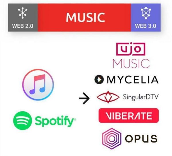 6.音乐流媒体 从专业从事音乐行业的艺人来说,他们依靠音乐流服务谋生,但 30% 的中间服务费,对那些刚刚起步的艺人而言,显然是一大笔开支。 去中心化网络可以为流媒体服务提供更好的解决方案,用户可以既是他们创作内容的版权人,又是最大受益人。 Web 3.0 将使消除中间商成为可能,它可以让广告客户、观众和内容创作者直接相互联系。