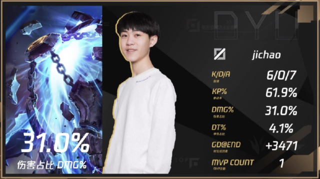 其实,王纪超泽拉斯的威力在上一场对阵GNR的比赛中已经体现。当时GNR也是头铁放出王纪超的泽拉斯,结果是惨败,GNR的AD甚至在泉水差点被三炮带走。而后两局比赛中,TPT禁掉了王纪超的泽拉斯,但王纪超选出加里奥同样打出了高光表现。第二局王纪超的加里奥被蛇女单杀,数据上略显难看,弹幕纷纷嘲讽王纪超没了泽拉斯就是“菜”。而在后期团战中,王纪超啪啪打脸弹幕,三波完美大招,帮助DYU打出三波团灭,成功完成翻盘。