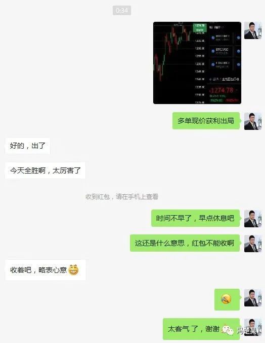 首先恭喜我们的陈女士周三开户入金1万u,不到三天的时间成功翻仓到1.8万u,这位陈女士跟我结识还是挺有趣的,原因竟是因为我的名字跟她上学那会喜欢的一个男生同名,当她跟我说到这事的时候一度怀疑我是不是她的同学,当然不是,如果真的有女生暗恋我,我早把她娶回家了!说到这位客户朋友的经历,应该是广大投资者的一个缩影吧,作为一个小白接触到币圈,花了很多很多的冤枉钱,交易不带止损,亏了就死扛甚至加金扛,盲目的操作追涨杀跌,最疯狂的一天连续交易了三十多次,当然她也感受到过赚钱的快乐,但是前两天直接爆仓,所有的资金付诸东流,只剩下买一只口红的钱,当然最后口红也没买,买了还哪有心思去涂啊;其实像这样的例子太多太多了,可能正在看文章的你就是其中一个,任何投资,一定要把风险控制放在第第一位,这是我给大家的提醒,也希望你们能够真正的引起重视!