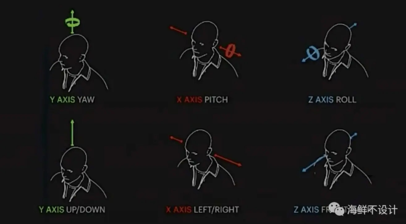 3DOF即3自由度,只有旋转坐标,没有位移坐标,只能以设定好的虚拟头部为中心点,一切观察的基点都源于头部的视角,就像是固定在电线杆上的摄像头,可以任意旋转,但无法上下左右前后位移离开电线杆。