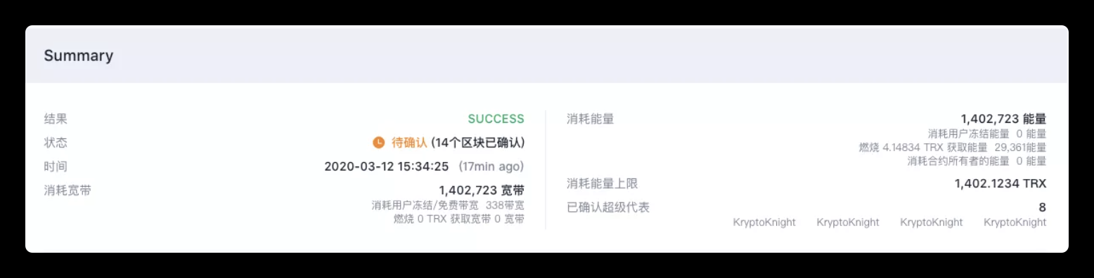 通過任意點擊或者搜索某一個區塊高度,就可以獲得該區塊的“摘要”和“交易”資訊。“摘要”顯示了這枚區塊的基本資訊,比如區塊高度、時間、狀態、交易數等,在“摘要”下方,就是這枚區塊裏包含的每筆交易(交易方、數額、交易時間等),幫助一般用戶時刻把握波場的“鏈上脈搏”。 交易數據,實時同步 憑藉行業領先的技術和數據深度,歐科雲鏈OKLink實時更新波場瀏覽器上的交易資訊。用戶通過點擊瀏覽器-TRON-交易列表,就可以進入波場瀏覽器的“交易列表”界面,查詢所有發生在波場公鏈上的交易(普通交易、內部交易)。 如果你給朋友或者陌生人轉了一筆USDT,想查詢這筆轉賬的實時狀態,在OKLink的波場瀏覽器上,只需要輸入(複製、粘貼)自己的交易哈希,點擊搜索,之後就可以獲得這筆交易的各種鏈上資訊,比如轉賬結果、狀態、轉賬時間、消耗寬頻、消耗能量等數據。在交易摘要下方,還會顯示這筆交易轉机出和轉入的錢包地址、轉賬數額。確認交易哈希這些數據無誤後,如果轉賬結果為“SUCCESS”,就説明你的這筆轉賬已經成功。