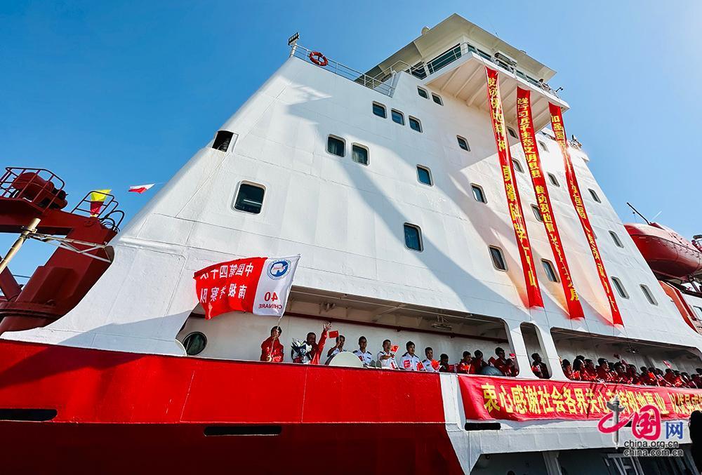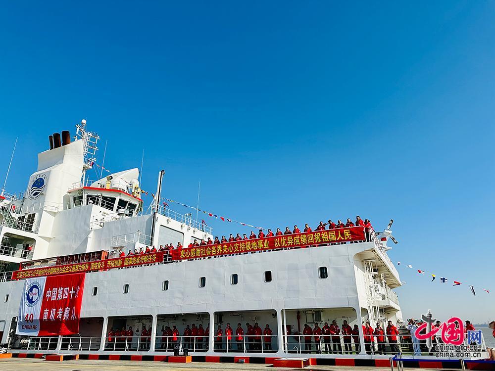 2023年11月1日,中国第40次南极考察启程。图为启航仪式现场。中国网 戴凡 摄影