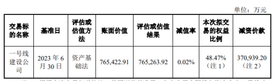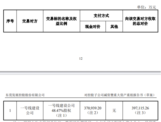中国经济网北京11月22日讯 深交所网站日前披露了《关于对东莞发展控股股份有限公司对控股子公司减资暨重大资产重组的问询函》。11月8日,东莞发展控股股份有限公司(以下简称“东莞控股(000828)”,000828.SZ)披露了《东莞发展控股股份有限公司对控股子公司减资暨重大资产重组报告书(草案)》 报告书显示,本次交易为东莞控股拟对其持有的控股子公司一号线建设公司全部注册资本进行减资,减资完成后,公司不再直接或间接持有一号线建设公司股权,一号线建设公司股权不再纳入公司合并财务报表范围。根据本次交易相关协议的约定,本次交易价款由一号线建设公司以现金方式支付,包括减资价款与实际投入资金的资金成本补偿金。 根据同致诚评估出具的《资产评估报告》,以2023年6月30日为评估基准日,一号线建设公司股东全部权益采用资产基础法评估的评估值为765,263.92万元,评估减值158.98万元,减值率为0.02%。根据本次交易相关协议,以上述评估结果及截至评估基准日中标社会资本实际投入资金(含实收资本及资本公积)占一号线建设公司全体股东实际投入资金总额(含实收资本及资本公积)的比例为基础,经交易各方协商确定中标社会资本减资价款合计为410,606.12万元。其中,东莞控股的减资价款为370,939.20万元。