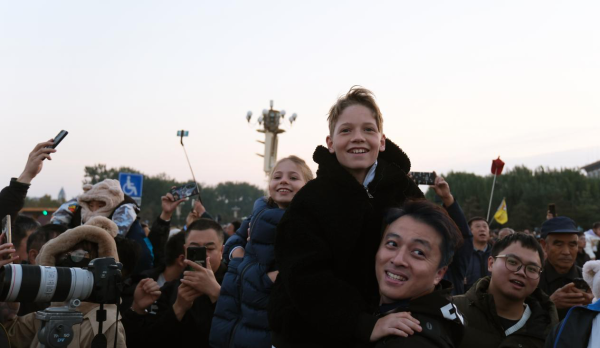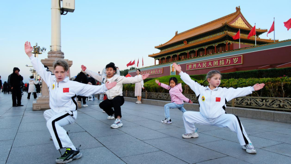 11月8日,当天安门广场迎来清晨第一缕阳光,国歌响起,看着五星红旗冉冉升起,安东的眼中充满了激动。升旗仪式结束后,安东和左一辰身着白色的武术服,来到天安门脚下,开始了他们的武术表演,出拳、踢腿、跳跃……动作干净利落、行云流水,不少游客被他们的武术所吸引,纷纷停下脚步,拿出手机记录下这精彩的一刻。