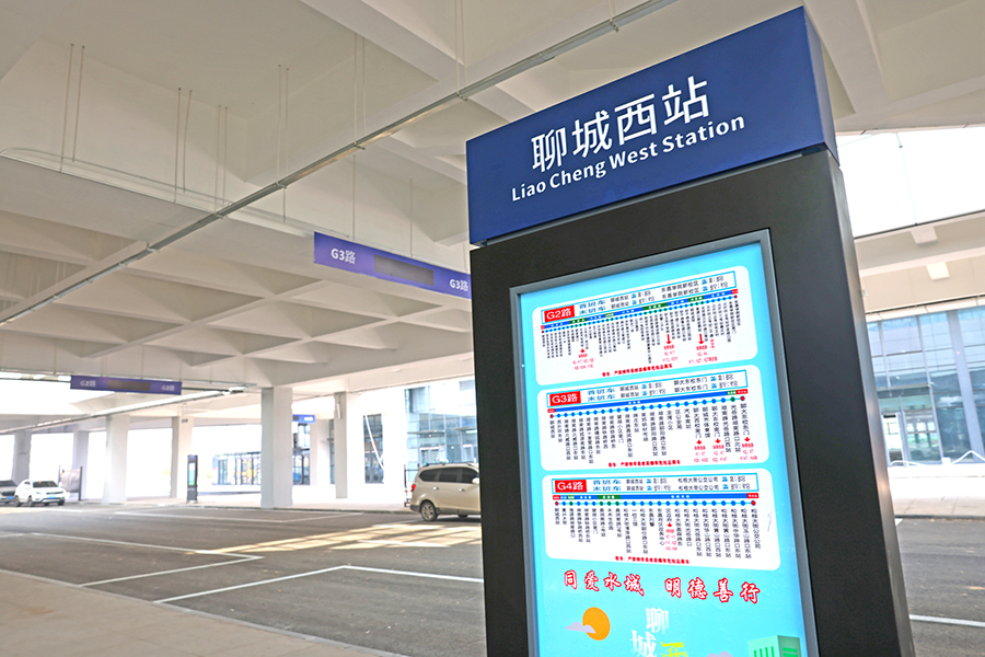 聊城西站公交站牌 在聊城西站公交站牌上,标注着G1、G2、G3、G4四条新增公交线路的具体站点信息。其中G1路是聊城西站到火车站,方便乘客接驳转乘。G2路和G3路是学子点对点线路,分别是东昌学院新校区和聊城大学东校至聊城西站。G4路是由松桂大街公交公司至聊城西站。据了解,公交集团还优化了K23路旅游专线,从聊城西站出发可以至孔繁森同志纪念馆、东昌湖风景区、聊城中国运河文化博物馆、朱雀街商圈、万达广场商圈等。