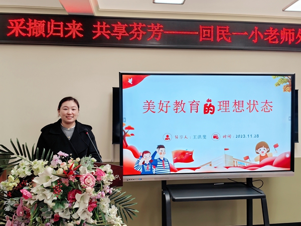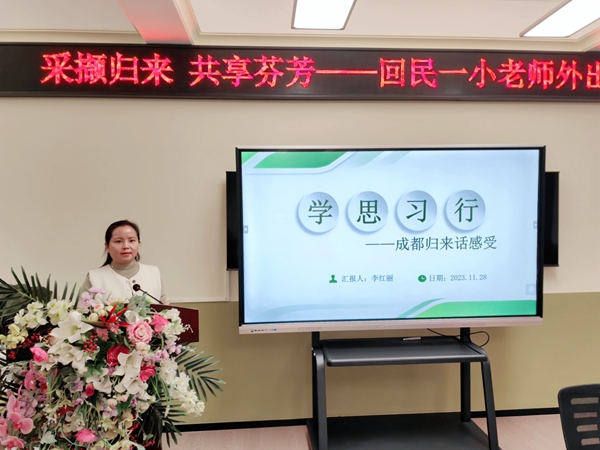 教导主任李红丽从所学、所思、所研、所行四个方面展开分享,向老师们展示了跟岗学校的创新和用心之处,为老师们今后的努力提供了方向。