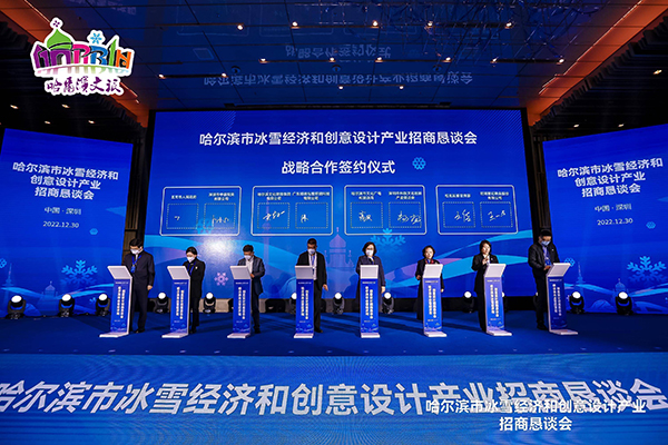 东北网12月30日讯(记者 霍枭涵)12月30日,在第十八届深圳文博会召开期间,由中共哈尔滨市委宣传部、哈尔滨市文化广电和旅游局主办的哈尔滨市冰雪经济和创意设计产业招商恳谈会在深圳召开。 此次招商恳谈会,哈尔滨市和以珠三角地区为主的国内外100余名文化旅游、创意设计企业负责人在现场出席,50余名企业家代表线上参与。会上,哈尔滨市将梳理出的总投资额超1000亿元、130余个冰雪经济、创意设计产业和特色文旅招商引资项目集中宣传、整体推介,全方位、立体化、多层次展示了哈尔滨市在大力发展冰雪经济、创意设计产业方面新政策、新举措和新远景,点燃了南北企业家谋划合作项目、共叙互动发展的热情。